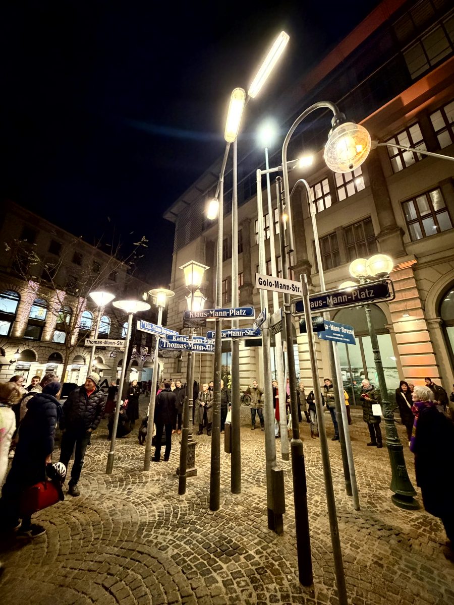 Am Salvatorplatz in München wurde am 09.12.2025 das Denkmal „Straßen Namen Leuchten“ vom Künstler Albert Coers feierlich eingeweiht. Das Kunstwerk erinnert an die Schriftstellerfamilie Mann und rückt deren internationales Wirken sowie das Exil unter der NS-Herrschaft in den Fokus. Die Installation besteht aus Schildern und Straßenleuchten von Orten, die mit der Familie Mann verbunden sind.
