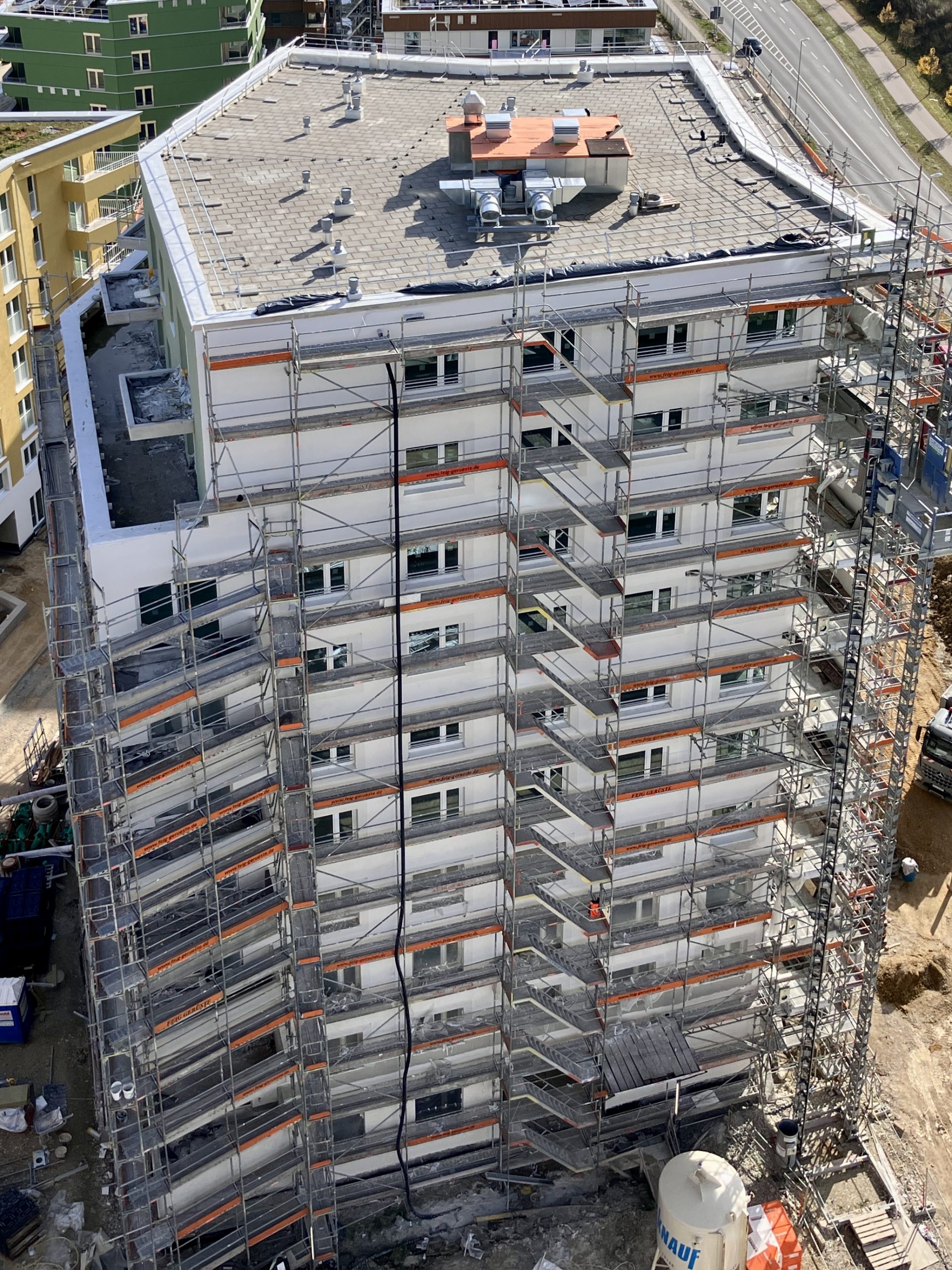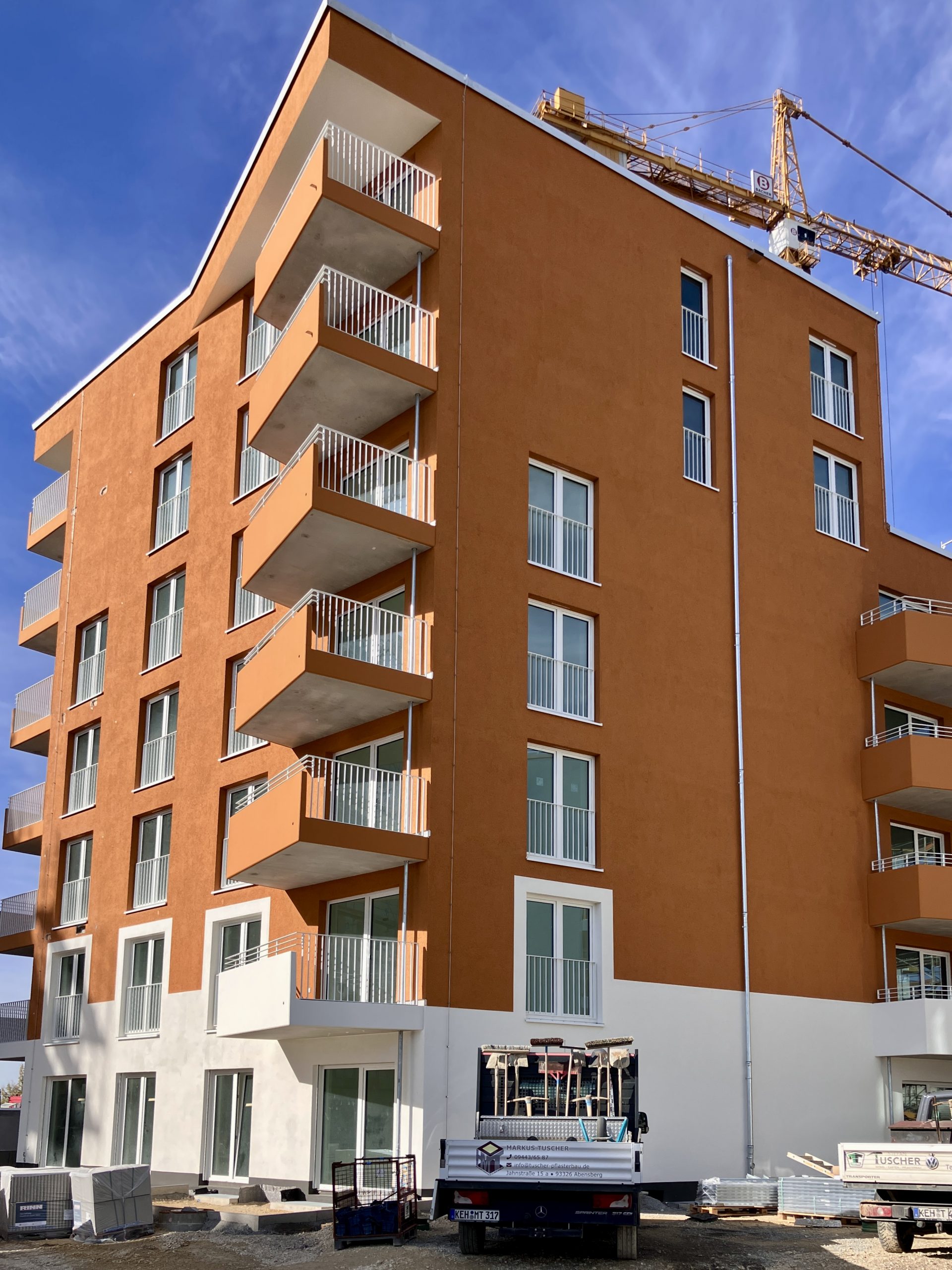 Auf dem Baugrundstück Kreuzung Stinnes- / Furtwänglerstraße in Ingolstadt entsteht ein Wohnquartier mit 11 zueinander versetzten Baukörpern mit unterschiedlicher Höhe (6 bis 15 Geschosse). Insgesamt umfasst das Bauvorhaben den Neubau von 437 Wohnungen, einer 3-gruppigen Kita, Gemeinschafts- und Gewerbeflächen und 427 Tiefgaragenstellplätzen. Die Geschoßfläche beträgt ca. 43.000 m².