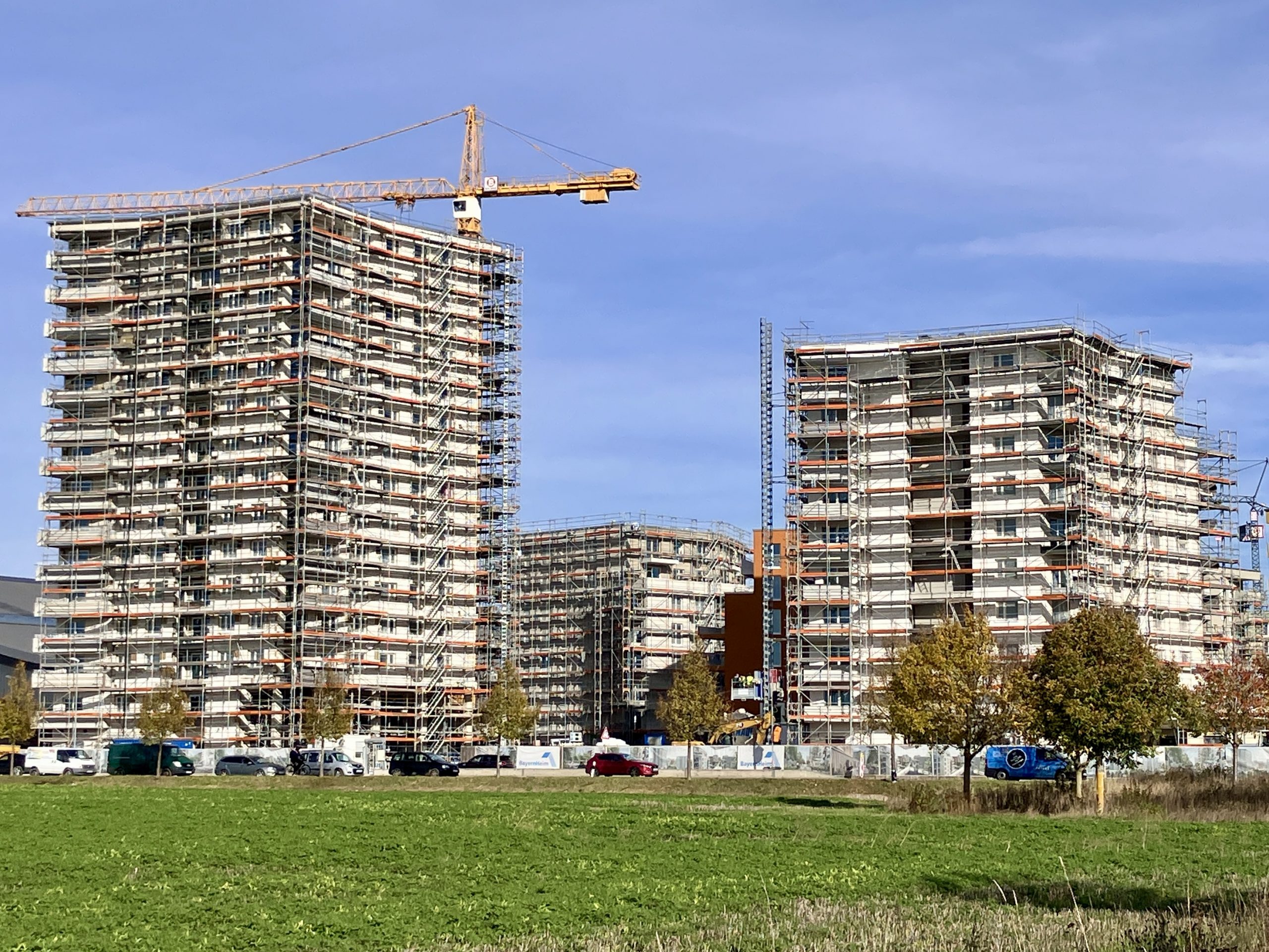 Die Gründung der Gebäude erfolgt als Kombinierte Pfahl-Plattengründung. Die Bodenplatte und die Außenwände werden in WU-Bauweise ausgeführt.